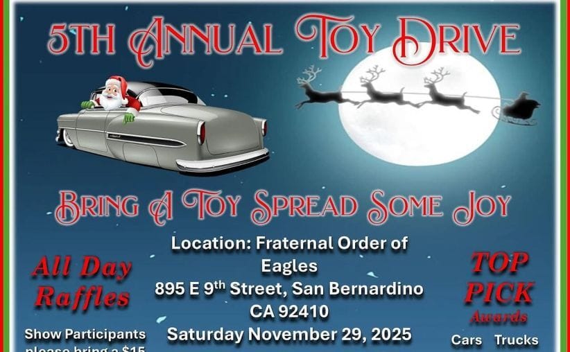 TEMESCAL VALLEYRiverside County’s Tom’s Farm is the spot for this Toy Drive C&C! | IE TOY DRIVEIE Bombs are hosting a toy drive car show this weekend! |